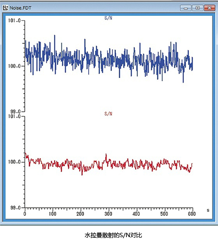 通過(guò)與前代機(jī)型的水拉曼散射S/N對(duì)比,F(xiàn)-4700靈敏度是前代機(jī)型的2倍,即使是微弱的信號(hào),也能實(shí)現(xiàn)低噪聲檢測(cè)。
