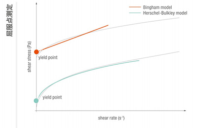 屈服點在質(zhì)量控制中至關(guān)重要.其用干確定開始擠壓和泵送過程所需的力。屈服點是樣品開始流動的起始點。屈服點可通過不同回歸模型進(jìn)行分析。在質(zhì)量控制方面.屈服點通過設(shè)定一個剪切速率斜坡并觀察與剪切應(yīng)力相關(guān)的數(shù)值進(jìn)行確定:結(jié)果為流動曲線