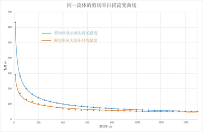 實(shí)際測(cè)量中,測(cè)量的物料大部分是非牛頓流體,其中又以剪切變稀的居多,大部分又具有和時(shí)間相關(guān)的觸變性,見(jiàn)下圖: