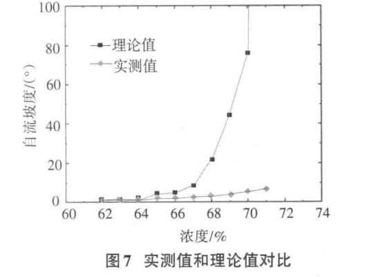 分別測量不同濃度條件下膏體自流的坡度 ,流速等參數(shù) ,研究其流動(dòng)性能[3-4]。