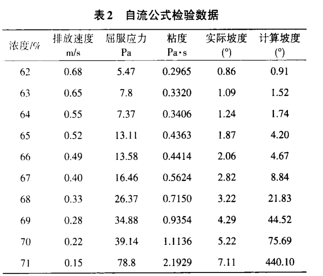 4、膏體自流坡度經(jīng)驗(yàn)公式檢驗(yàn)
