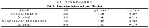 眾所周知,漿材在灌漿過程中會(huì)發(fā)生壓濾效應(yīng),已有研究成果表明壓濾效應(yīng)會(huì)對(duì)強(qiáng)度產(chǎn)生較大影響 [14] ,而關(guān)于發(fā)生壓濾效應(yīng)后漿材的流變性能的變化卻少有研究。產(chǎn)生壓濾效應(yīng)孔隙大小試驗(yàn)。圖 10、圖 11 為試驗(yàn)裝置圖。表 2 可知,兩種漿材壓濾前后密度、粘度均發(fā)生了變化。粘土水泥漿材的密度變化為 0. 075 kg/m 3 ,粘度變化為 0. 017 Pa·s;純水泥漿材的密度變化為0. 030 kg/m 3 ,粘度變化為 0. 0202 Pa·s。粘土水泥漿材密度變化較大,但粘度變化較小;純水泥漿密度變化較小,但粘度變化較大。圖 12 看出,相同水固比的兩種漿材通過同一目數(shù)濾網(wǎng)的量不一。濾網(wǎng)孔徑 0. 3 mm時(shí)幾乎全部通過,粘土水泥漿材濾過量在孔徑 0. 3 ~0. 25 mm 之間大幅下降,而純水泥漿在孔徑 0. 25 ~0. 18mm 之間大幅下降。說明同樣空隙的條件下,粘土水泥漿材發(fā)生壓濾效應(yīng)的程度更重。
