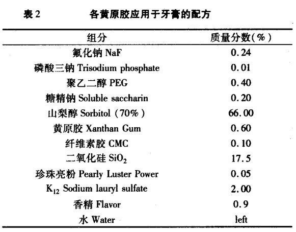 (3)屈服應力可體現牙膏的制造和包裝容易性,4 一xanthan?。悖欤澹幔颍福?更容易運輸, 洗刷分散性更好,更容易從牙膏管中擠出。