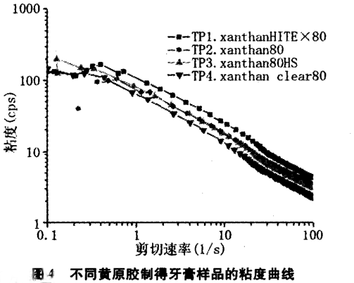 [3]。 圖 4 采用對數坐標,顯示了不同牙膏樣品的粘度曲線。