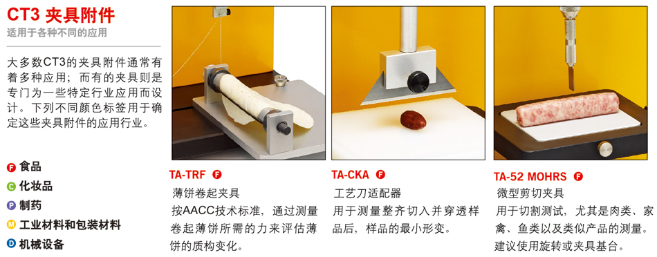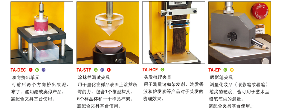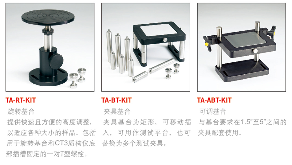探頭和夾具:CT3質(zhì)構(gòu)儀配備有非常齊全的測(cè)試配件、夾具以及探頭,可滿足您全方位的測(cè)試要求
