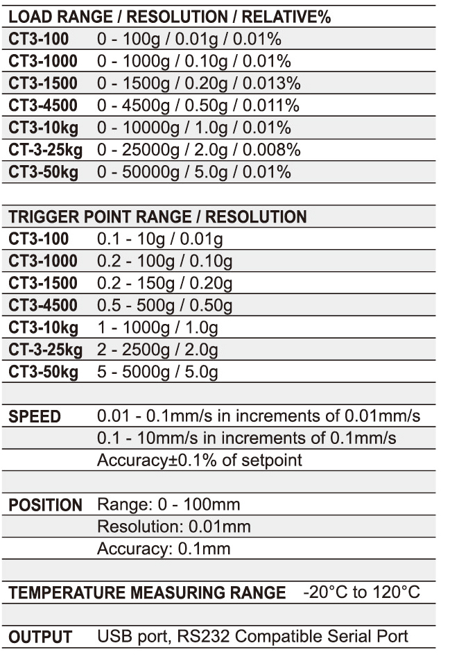 質(zhì)構(gòu)儀CT3測(cè)量參數(shù)