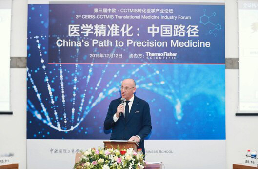 2019年12月13日,上海——由中歐國(guó)際工商學(xué)院、全國(guó)衛(wèi)生產(chǎn)業(yè)企業(yè)管理協(xié)會(huì)轉(zhuǎn)化醫(yī)學(xué)產(chǎn)業(yè)分會(huì)(CCTMIS)聯(lián)合主辦,科學(xué)服務(wù)領(lǐng)域的世界領(lǐng)導(dǎo)者賽默飛世爾科技(以下簡(jiǎn)稱:賽默飛)協(xié)辦的第三屆中歐-CCTMIS轉(zhuǎn)化醫(yī)學(xué)產(chǎn)業(yè)論壇以 “醫(yī)學(xué)精準(zhǔn)化:中國(guó)路徑”為題, 近日在中歐國(guó)際工商學(xué)院上海校區(qū)隆重召開。本次論壇主題“醫(yī)學(xué)精準(zhǔn)化”,來源于中歐國(guó)際工商學(xué)院與國(guó)家衛(wèi)健委科技中心等三家機(jī)構(gòu)在此領(lǐng)域的合作研究課題《醫(yī)學(xué)精準(zhǔn)化》。此次也是“醫(yī)學(xué)精準(zhǔn)化”這一提法首次在業(yè)內(nèi)發(fā)布并且展開。