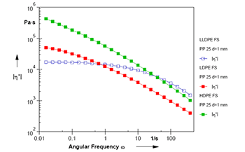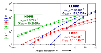 正如所看到的那樣,聚乙烯熔體的頻率掃描可以給出以下信息: