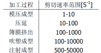 表 1 聚合物加工過程典型的剪切速率范圍