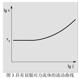 脹性流動曲線如圖 4 中的 3 號樣品所示,曲線經(jīng)過原點,且隨著剪切應(yīng)力的增大其粘性也隨之增大,雖然這種流體不如假塑性流體常見,然而脹塑性流體??捎纱嬖谟胁粫奂腆w的流體中看到,如泥漿、糖果合成物、玉米淀粉類與水的混合物以及沙/水混合物。此類流體的行為也可稱為剪切增稠(shear thickening)。