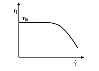 實際上大多數(shù)液體不符合牛頓定律,如高分子溶液、膠體溶液、乳劑、混懸劑、軟膏以及固-液的不均勻體系的流動均不遵循牛頓定律,因此稱之為非牛頓流體(non-Newtonian fluid),此種物質(zhì)的流動現(xiàn)象稱為非牛頓流動(non-Newtonian flow)。對于非牛頓流體可以用旋轉(zhuǎn)粘度計測定其粘度,對其剪切應(yīng)力 τ 隨剪切速率的變化作圖可得,如圖 3 和圖 4 中所示的流動曲線(flow curve)或粘度曲線(viscosity curve)。根據(jù)非牛頓流體流動曲線的類型把非牛頓流動分為塑性流動、假塑性流動和脹性流動三種。