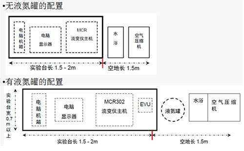水浴放置靠近流變儀一米以內(nèi)的桌下或側(cè)面,高度為60公分,準備6L去離子水或其他液體作為循環(huán)介質(zhì),如需制冷到0℃以下,請準備無水乙醇或防凍液;