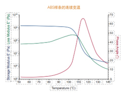 軸向力控制和自動(dòng)應(yīng)變的優(yōu)點(diǎn)在使用三點(diǎn)彎夾具對(duì)ABS樣條的測(cè)試中表現(xiàn)得尤其突出。軸向力移動(dòng)十字頭能保證在測(cè)試過(guò)程中夾具能始終緊密接觸樣品。恒力調(diào)整在跟蹤樣品在測(cè)試過(guò)程中的熱膨脹和由于玻璃化轉(zhuǎn)變過(guò)程中的模量急劇變化可避免樣品彎曲。
