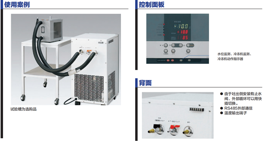 自診斷功能、過電流漏電保護開關、按鍵鎖、停電補償功能,還具有流量監(jiān)視、冷凍機監(jiān)視、冷凍機保護用延時計時器、流量異常、高壓異常、超溫保護器 |